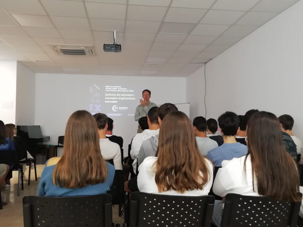 El Dr. Amabilino ha ofert una ponència adreçada a l’alumnat de 4t d’ESO i Batxillerat de les branques científico-tecnològiques, apropant-los al camp de la química dels colorants i a les seves noves aplicacions tecnològiques, tot fomentant l’interès per la ciència i les vocacions STEM.