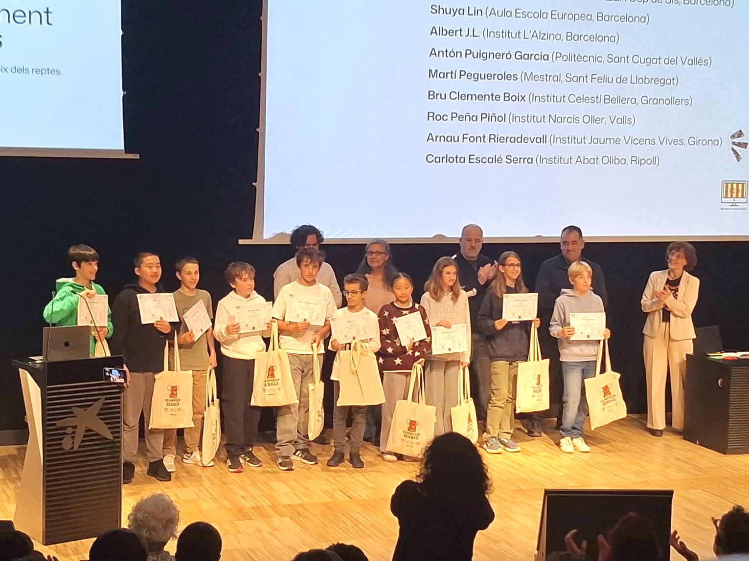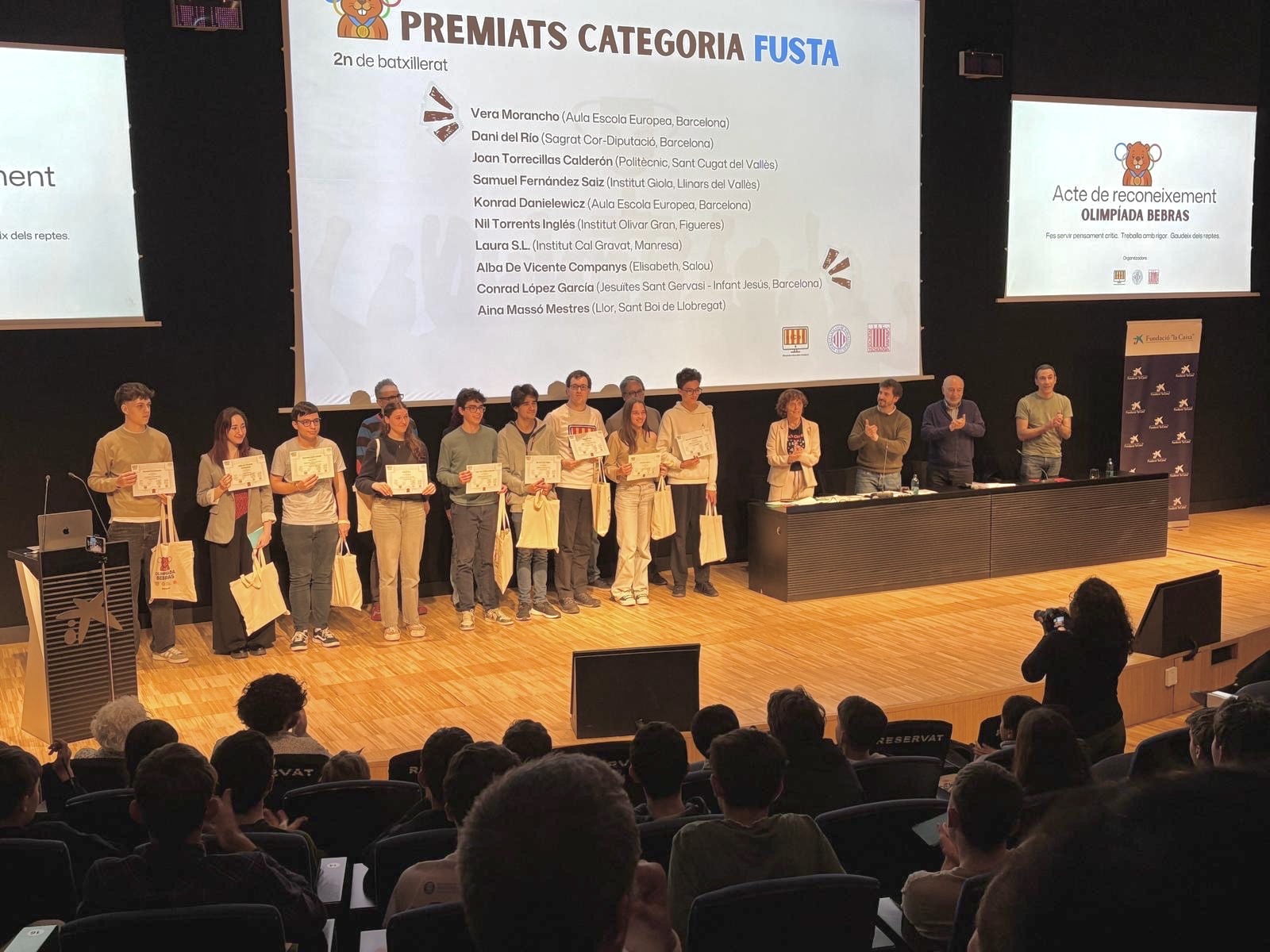 A més, el passat 4 de març es va celebrar un acte de reconeixement al CosmoCaixa per als estudiants amb les puntuacions més altes d’aquesta franja. En representació del nostre centre hi van assistir Joan Torrecillas (2n de Batxillerat) i Antón Puigneró (1r d’ESO).